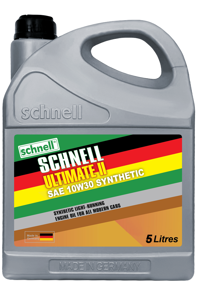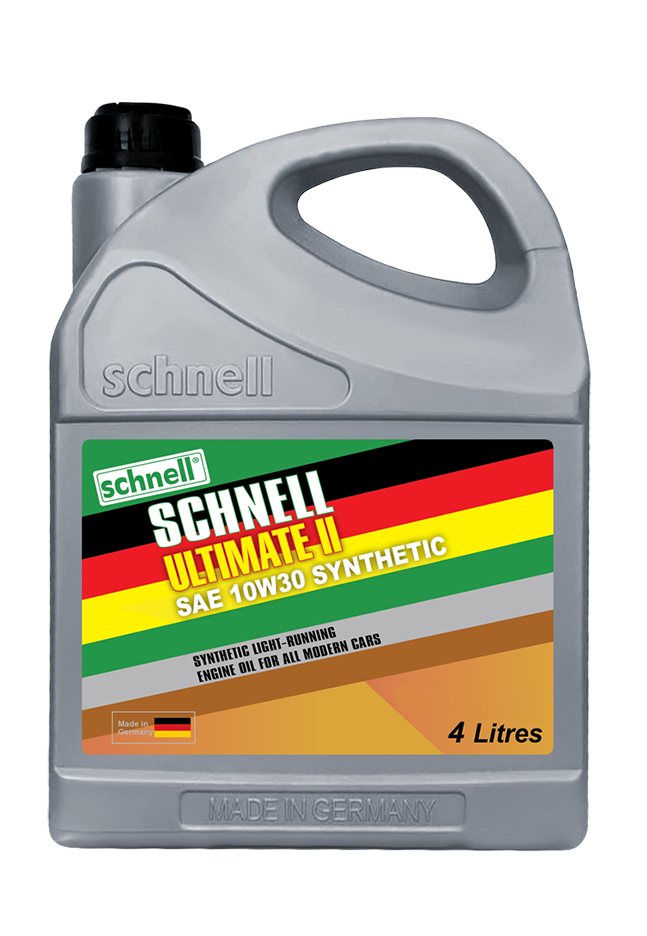 Schnell Ultimate II SAE 10W-30 Ultimate II is a fully synthetic, ester-based formulation that protects against friction, heat and corrosion and keeps the engine healthy and efficient. Reduce carbon and sludge formation in difficult driving conditions.